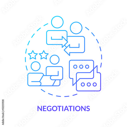 Negotiations blue gradient concept icon. Business discussion. Compromise. Stage of merger abstract idea thin line illustration. Isolated outline drawing. Myriad Pro-Bold fonts used