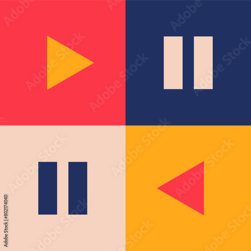 Neo Geometry Bauhaus Style - Play and Pause Icon Colorful and Joyful