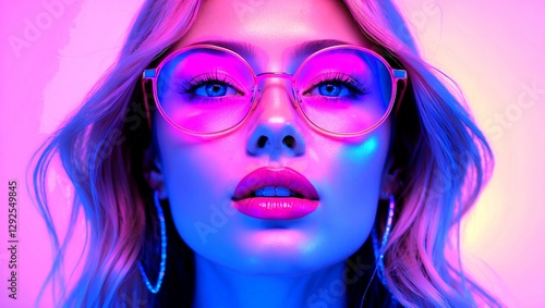 Neon aesthetic portrait of a glamorous woman