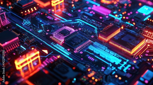 circuit, board, technology, digital, electronic, neon, glowing, computer, hardware, chips, processor, microchip, motherboard, innovation, future, science, electric, network, system, datum, information, wiring, connection, component, integrated, circuitry, abstract, design, graphic, rendering, three-dimensional, art, colourful, vibrant, energy, power, pixel, line, complex