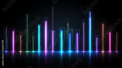 abstract, city, skyline, neon, light, futuristic, graphic, design, illustration, modern, colourful, vibrant, glowing, illumination, technology, digital, art, background, wallpaper, image, visual, aesthetic, colours, night, urban, architecture, shape, line, surface, vector, contemporary, pattern, glow, light, style, artwork