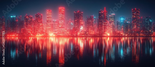 city landscape, night, skyscraper, urban, building, light, neon, red, blue, water, city, metropolis, modern, architecture, illuminated, glow, dark, skyline, panorama, nightlife, vibrant, energy, scene, view, beautiful, fantastic, amazing, spectacular, impressive, stunning, breathtaking, picturesque, scenic, city landscape, metropolitan, contemporary, artificial light, evening, night photography