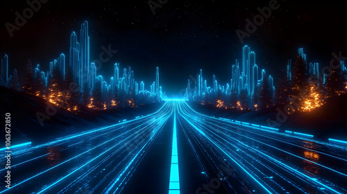 futuristic, graphic design, neon, city, landscape, abstract background, background image, future, graphic, city landscape, digital artwork, minimal, sky, light, three-dimensional, line, road trip, neon light, night, digital illustration, abstract art, dark, vector, urban, artwork, glowing, background, art, background, modern, technology, street, aesthetic, digital, blue, illustration, wallpaper, design, minimalism, night sky