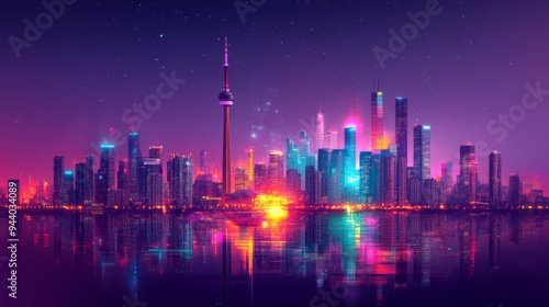 city, skyline, neon, night, futuristic, urban, building, colourful, light, water, modern, architecture, nightscape, downtown, glowing, metropolis, skyscraper, vibrant, digital artwork, night view, tech, city landscape, evening, illuminated, panoramic, street light, reflections, horizon, fantasy, landscape, creative, digital illustration, science fiction, urban scene, background, sky, lit, panoramic view, nightlight, tower block, artistic, city centre, high technology, city life