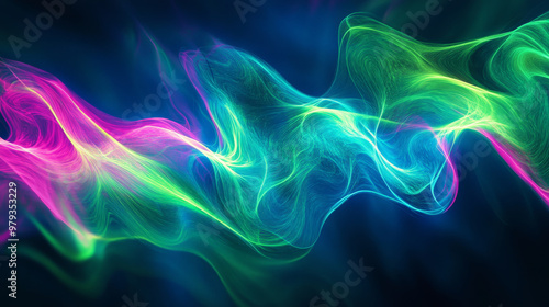 Neon color waves of vibrant green, electric blue, and bright pink, flowing together in dynamic shapes for a high-energy abstract composition.