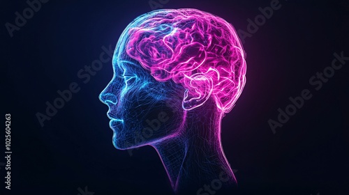 Neon Dreams - Conceptual Head with Fragmented Light and Swirling Forms Representing Inner Thoughts in Studio Setting