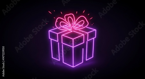 neon, gift, box, present, glowing, light, pink, purple, graphic, design, illustration, vector, art, colourful, festive, celebration, holiday, christmas, birthday, surprise, animation, digital, modern, abstract, symbol, icon, design element, magenta, decorative