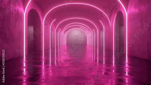 neon, glow, corridor, futuristic, pink, light, three-dimensional, rendering, aethereal, atmosphere, reflecting, wet, floor, abstract, design, architecture, modern, contemporary, graphic, minimal, vibrant, line, texture, pattern, perspective, hallucinogen, night, nightlife, glowing, digital artwork, technology, science fiction, retro, art deco, fantasy, surreal, dreamlike, mystery, exploration, discovery, space, unknown
