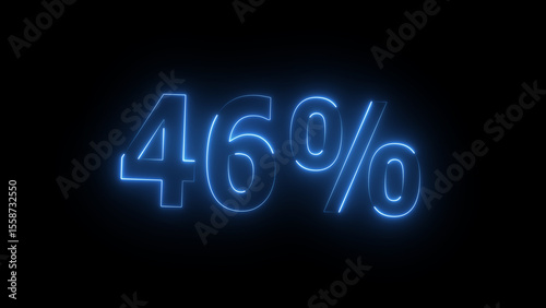 Neon glowing 46 percent icon illustration. on black background. Abstract 46% percent text neon illustration. and creating a stunning 4k illustration.