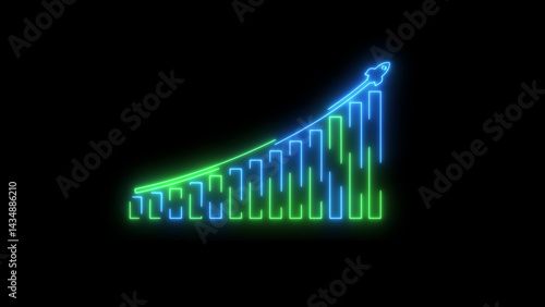 Neon Glowing business graph icon illustration