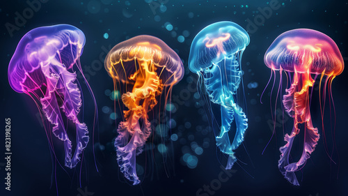 neon, glowing, jellyfish, colours, dark background, underwater, marine life, closeup, ocean, marine animal, aquatic, aethereal, vibrant, surreal, fluorescent, colourful, mesmerizing, semitransparent, phosphorescent, deep sea, luminescent, surrealism, bioluminescence, neon light, ocean life