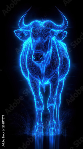 Neon glowing wildebeest in electric blue, a striking wildlife-inspired phone wallpaper