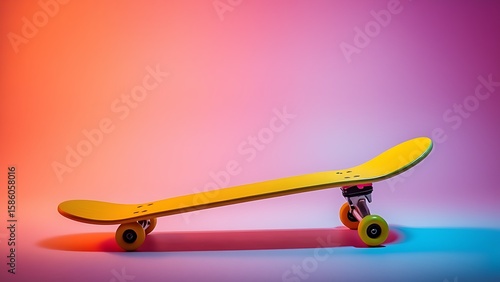 Neon gradient skateboard on dynamic studio angle