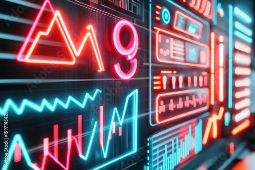 modern, system, abstract, vibrant, colourful, technology, display, interface, digital, red, design, number, high-coloured, panel, bright, blue, information, graphic, chart, screen, pattern, futuristic, indicator, glowing, illustration, line, neon, light, visual, dynamic, datum