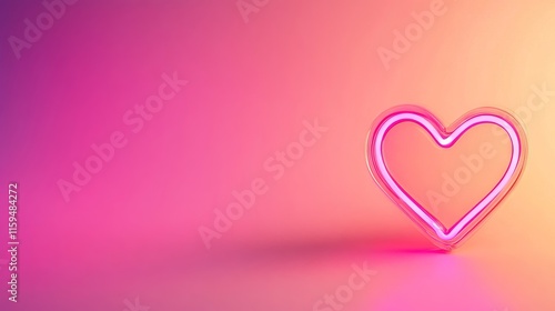neon heart on pink with gradient background, banner for lovers day