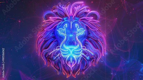 neon, lion, zodiac signs, astrology, illustration, glowing, colours, dark, background, digital, art, fierce, majestic, mane, blue, pink, wild, animal, graphic, artistic, vibrant, bright, modern, design, creative, abstract, nature, powerful, wildlife, head, fantasy, futuristic, aglow, electric, striking, intense, bold, detailed, pattern, symmetric, cosmic, energy, sharp, light, stylish, visual, unique, high-coloured, purple