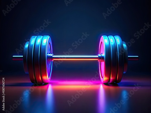 Neon Lighted Barbell Illustration for Fitness and Gym Enthusiasts