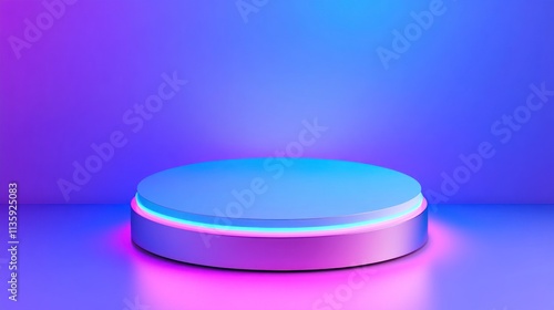 platform, racked, display, neon, light, light, blue, purple, pink, magenta, vibrant, colourful, bright, glowing, illuminated, circle, round, cylindrical, modern, contemporary, minimalist, abstract, background, scene, studio, product, showcase, presentation, design, graphic, illustration, three-dimensional, render, rendering, technology, futuristic, colours, gradient, smooth, glossy, shine, reflective, shadow, empty, space, geometric