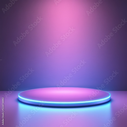 dais, platform, stage, display, product, presentation, background, purple, pink, neon, light, glow, illuminated, circle, round, three-dimensional, render, studio, minimal, modern, abstract, design, template, branding