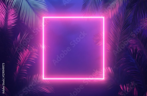 neon, pink, frame, leaf, tropical, plant, palm, light, purple, colours, background, design, summer, vibrant, art, modern, aesthetic, glowing, square, empty, empty space, creative, illustration, digital, wallpaper, poster