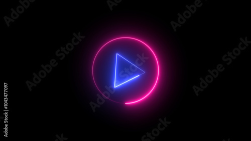 Neon play button. 3d icon for music. Banner with glow for games, Neon shine play icon. 3d rendering .