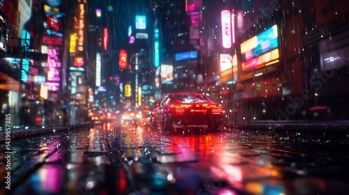 city, rain, neon, light, car, street, night, urban, wet, futuristic, city landscape, glowing, reflections, transport, vehicle, technology, bright, vibrant, atmosphere, dark, colourful, modern, downtown, road, traffic, driving, motion, architecture, building, illuminated, signage, digital, artwork, scenery, scene, cinematic, mood, rainy, evening