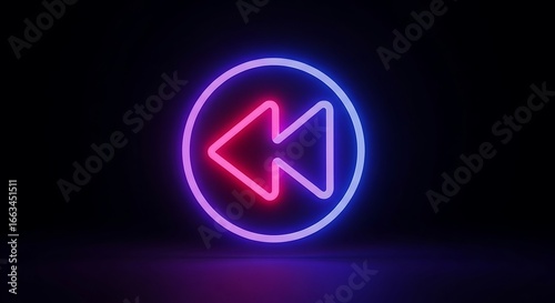rewind, buttons, neon, light, glowing, icon, symbol, music, audio, video, media, player, control, back, previous, retro, vintage, digital, technology, design, art, abstract, dark, background, blue, pink, purple, illumination, entertainment, interface