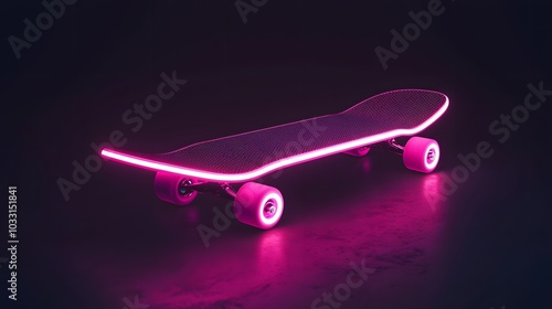 skateboard, neon, pink, glow, light, futuristic, modern, sport, extreme, design, cool, trendy, style, graphic, abstract, street, urban, night, dark, background, three-dimensional, render, illustration, technology, digital, art, graphic design, wheel, board, skateboarding, skate, cruiser, fashion, youth, lifestyle, energy, dynamic, motion, speed, adventure, fun, hobby, leisure, entertainment