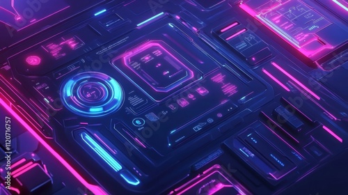 neon, tech, interface, background, futuristic, science fiction, digital, technology, abstract, glowing, line, panel, electric, light, vibrant, colours, pink, blue, purple