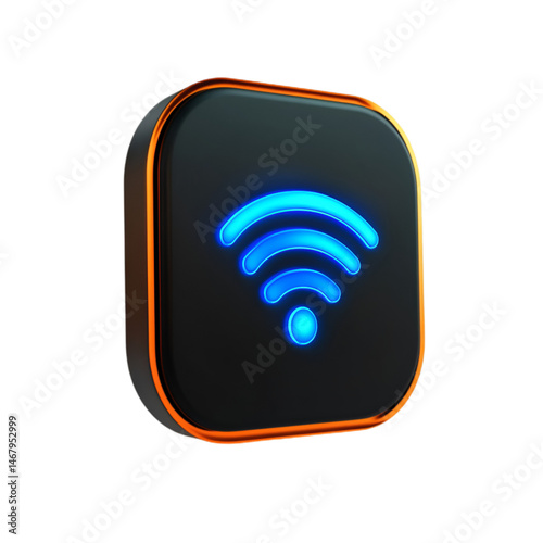 wi-fi, wireless, network, connection, cyberspace, technology, digital, icon, symbol, blue, neon, glowing, dark, black, orange, square, buttons, app, interface, signal, communication, online, modern, futuristic, design, three-dimensional, rendering, electric, bright, vibrant, abstract, illuminated, contraption, device