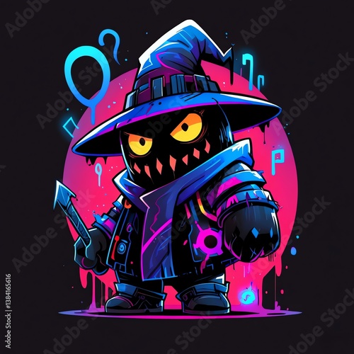 sorcerer, magic, neon, illustration, character, fantasy, artwork, magician, sorcerer, dark, colourful, vibrant, cosmic, energy, staff, mystical, enchanting, powerful, glowing, purple, pink, blue, night, darkness, mysterious, intriguing, stylish, modern, rebellious, fierce, bold, graphic, design, artistic, creative, abstract, halloween, gamer, game