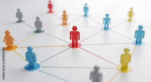 Network Connection: Colorful Figures Linked in Social Communication on White Background, Representing Relationship and Communication