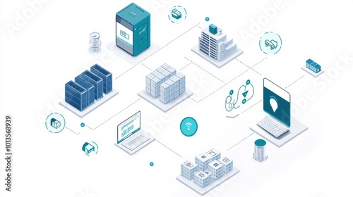 supply, chain, logistic, network, isometric, diagram, transportation, warehouse, server, global, management, distribution, connectivity, illustration, digital, technology, storage, infrastructure, system, shipping, cargo, box, industry, tech, design, icon, graphic, cloud, datum, tracking, delivery, modern, online, process, map, plan, schematic, commerce, trade, international, package, hub, node