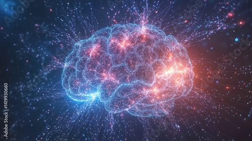 brain, neural, network, human, nervous, system, nerve cell, synapses, connection, activity, electricity, energy, light, colours, vibrant, glowing, particle, point, dot, complex, intricate, structure, anatomy, medicine, science, technology, visualisation, representation, digital, illustration, abstract, dynamic, beat, red, blue, pattern, image, neurology, physiology, process, mind
