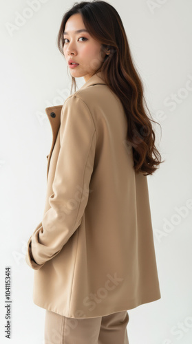 Neutral Fall Fashion Model Portrait in Stylish Outfit for Women – Elegant Coat, Jacket, and Layered Look for Autumn Fashion Photography