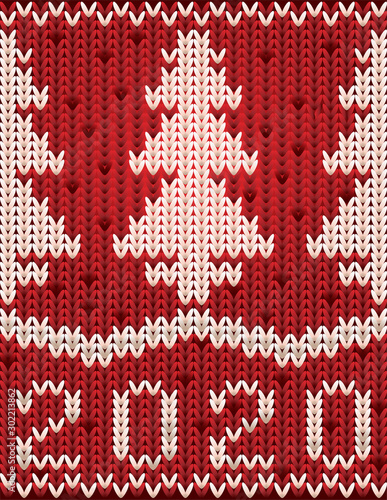 New 2020 year knitted pattern wallpaper with xmas tree, vector illustration