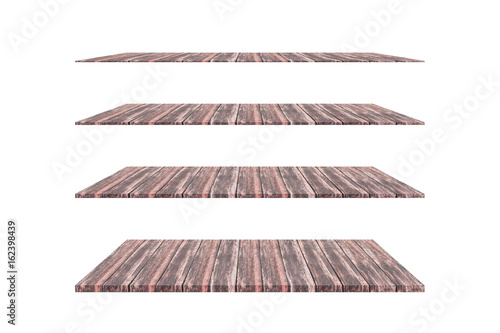 New collection of wooden shelves isolated on white background, Objects with Clipping Paths for design work