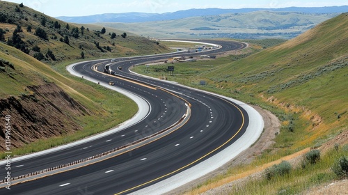 New highway being built, with freshly laid asphalt and traffic dividers.