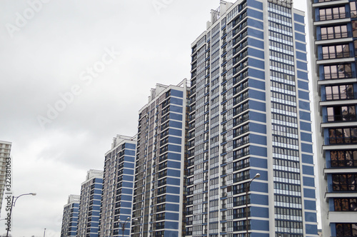 New modern tall blue glass multi-storey comfortable urban monolithic frame houses buildings skyscrapers new buildings in the big city of the megalopolis