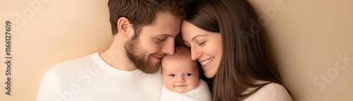 New parents capturing a candid moment of laughter with their baby, postnatal care, joyful milestones