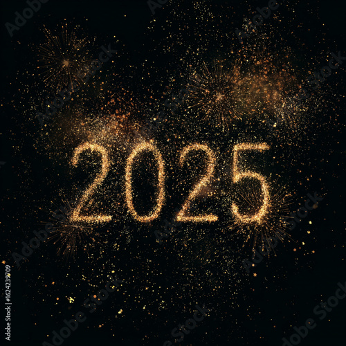 fireworks, year, new, holiday, night, new year, sky, happy, party, light, celebrate, explosion, fire, black, abstract, star, event, bright, illustration, 2025, gold, background, exploding, spark, dark, horizontal, burst, festive, effect, glowing, show, colours, sparkle, no people, new year's eve, text, greeting card, nightlife, shiny, luxury, concept, fireball, eve, wallpaper, joy, photo, anniversary, colourful