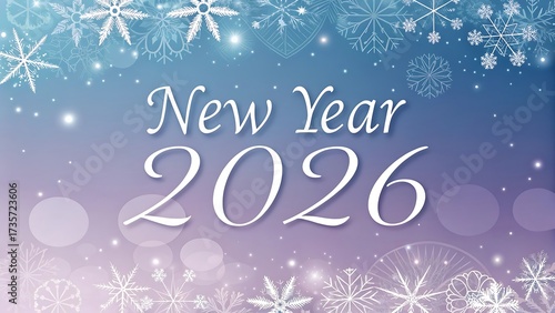 New Year 2026 — sparkling snowflakes and soft blue glow celebrate the future.