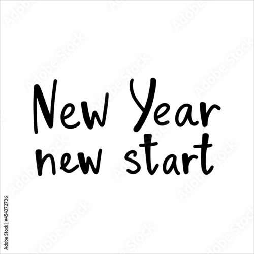 New Year new start Inspirational and motivational quote. Modern brush calligraphy black and white typography vector illustration for poster print, postcard, poster, banner, logo, sign, sticker, blog