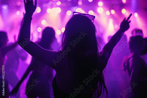 ai, art, artificial, concept, generative, illustration, intelligence, picture, portrait, carefree, clubber, cool, dance, dancer, disco, discotheque, entertainment, fun, funky, funny, music, party, rest, relax, weekend, holiday, club, chill, nightclub, celebrate, leisure, happy, joy, 116, people, neon, light, purple, violet, illumination, young, woman, man, night, silhouette, ultraviolet, spotlight