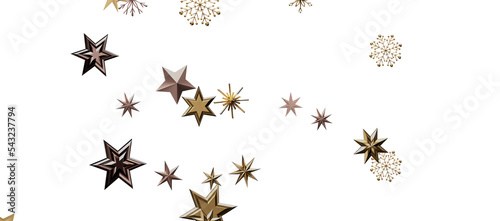 new year pattern. Christmas theme, golden openwork shiny snowflakes, star, 3D rendering.