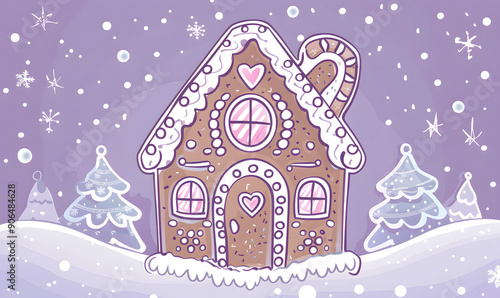 New Year's and Christmas festival cards in a 2D doodle illustrator style on pastel color backgrounds for graphic advertising.