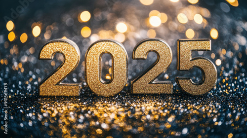 New Year's Day with golden glitter banner