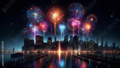 fireworks, city, new year, 2025, 2026, 2027, 2028, 2029, 2030, 2031, 2032, 2033, explosion, happy new year, new year's eve, colourful, joyful, fireworks, night, celebration, festival, light, sky, holiday, party, fire, water, new, celebrate, year, river, christmas, event, skyline, display, black