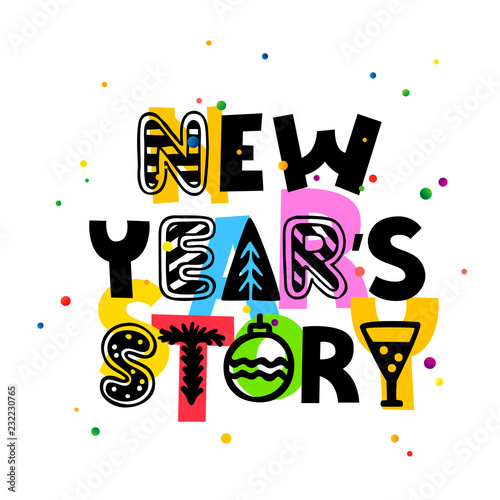 New Year's Story. Lettering. Christmas font. Holiday concept