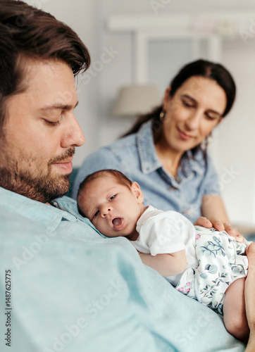 newborn, baby, girl, sleeping, chest, family, happy, white, children, female, relaxation, home, man, bonding, softness, person, male, father, father, small, joy, mother, holding, tiny, room, resting, indoor, delicate, woman, living room, carrying, human, serene, eltern, innocence, daughter, mother, care, warmth, new life, comfortable, infant, affectionate, domestic life, fatherhood, napping, father
